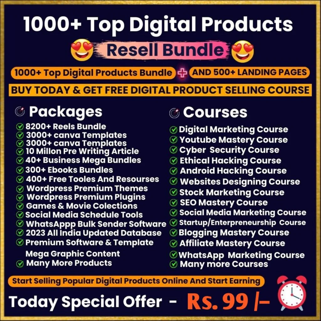 A digital product can be any product that has no physical existence and can be shared through the web like courses, Ebooks, SAAS, Templates, Graphics Bundle, etc.